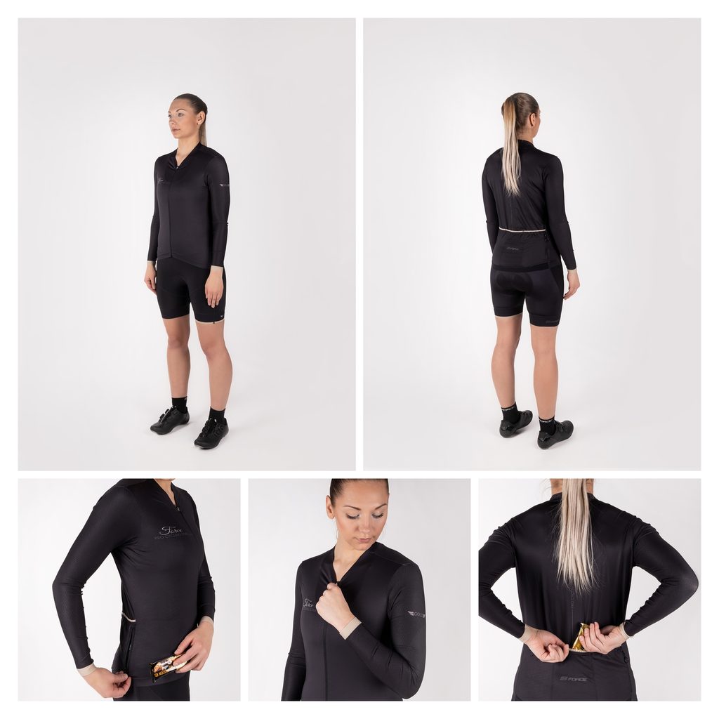 Užijte si maximální komfort a styl při svých cyklistických dobrodružstvích s dámským dresem FORCE GOLD LADY s dlouhým rukávem. Tento černý dres je navržen pro cyklistky, které hledají kombinaci funkčnosti, pohodlí a elegance.