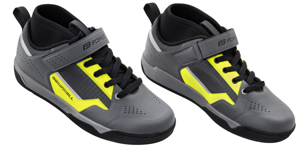 Tretry FORCE DOWNHILL FLAT v atraktivní šedo-fluo kombinaci jsou speciálně navrženy pro technické disciplíny jako sjezd, enduro a freeride. Tyto tretry poskytují skvělou přilnavost, ochranu a stabilitu, což je činí ideálními pro náročné terény a intenzivní jízdy.
