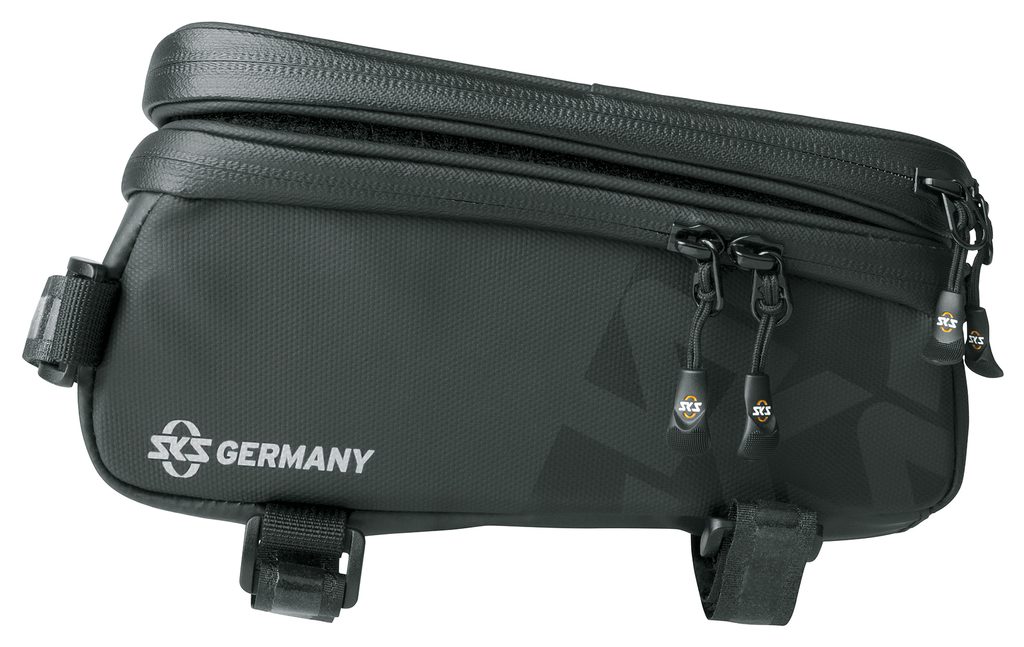 Chytrá rámová cyklo brašna SKS Explorer Smart s oddělitelným pouzdrem na telefon kompatibilním s dotykovými displeji a integrovanou kapsou na drobnosti. Brašna je vyrobená z pogumované voděodolné tkaniny.