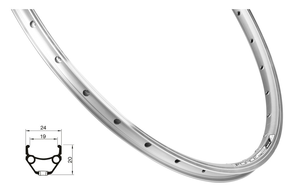 Ráfek Force CLASSIC 559x19, 32 děr, stříbrný - Dvojstěnný plášťový ráfek pro V-brzdy