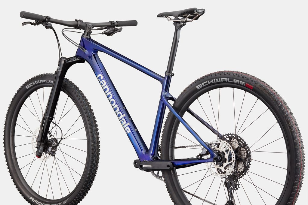 Temně modrá (TBL) verze s karbonovými detaily vypadá špičkově nejen na trailu, ale i na startovní čáře. Nezaměnitelný styl Cannondale v kombinaci s top výbavou = vítězná kombinace.