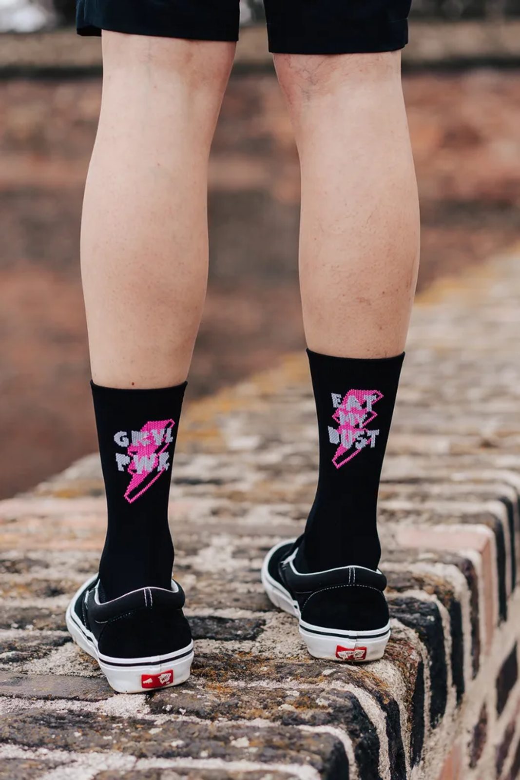 Tyhle ponožky jsou stvořené pro gravelisty každým coulem. Bláto, prach, štěrk – to je tvoje přirozené prostředí? Pak jsou ponožky GRVL PWR právě pro tebe. S ikonickým nápisem EAT MY DUST na jedné noze dáš světu jasně najevo, že štěrk je tvoje hřiště.