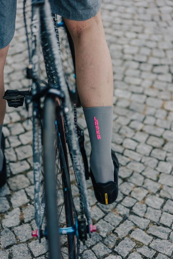 Ať už míříš na Stravu KOM, nebo jen na kafe po práci, tyhle ponožky tě podrží. A připomenou ti, že i když to někdy bolí – kolo je pořád ta nejlepší terapie.