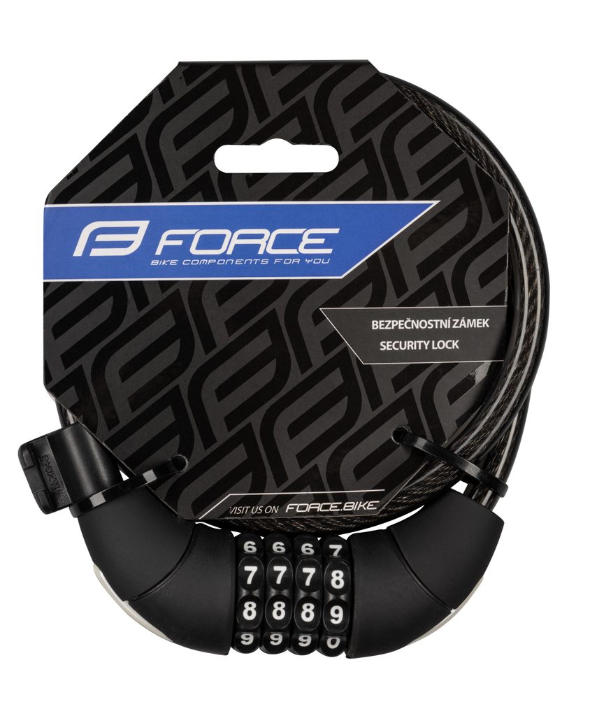 Tento kódový spirálový zámek FORCE nabízí jednoduché a praktické zabezpečení pro každodenní používání. Je vybaven čtyřmístným kódovým mechanismem a dodává se s praktickým držákem pro montáž na kolo.