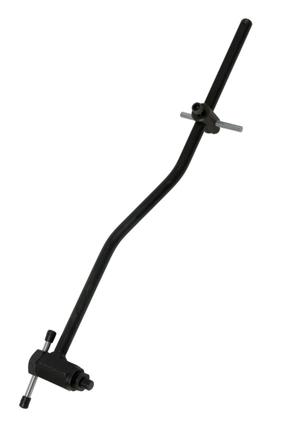 Vyroben z kvalitní černěné oceli, což zajišťuje vysokou pevnost a dlouhou životnost. Délka 405 mm umožňuje efektivní páčení a přesné vyrovnání, zatímco čep o délce 70 mm poskytuje jasnou referenci pro správné nastavení patky.