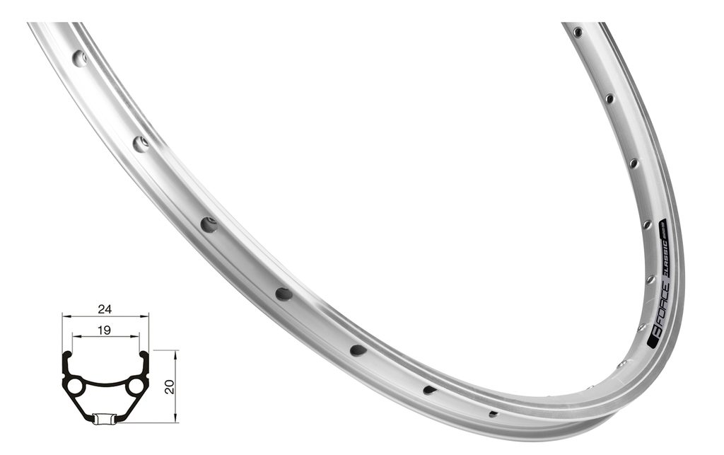 Tento 28" (622x19) dvojstěnný ráfek Force CLASSIC je ideální volbou pro kola s V-brzdami. Vyroben z lehké a odolné hliníkové slitiny, poskytuje vynikající pevnost, dlouhou životnost a spolehlivý výkon i v náročných podmínkách.